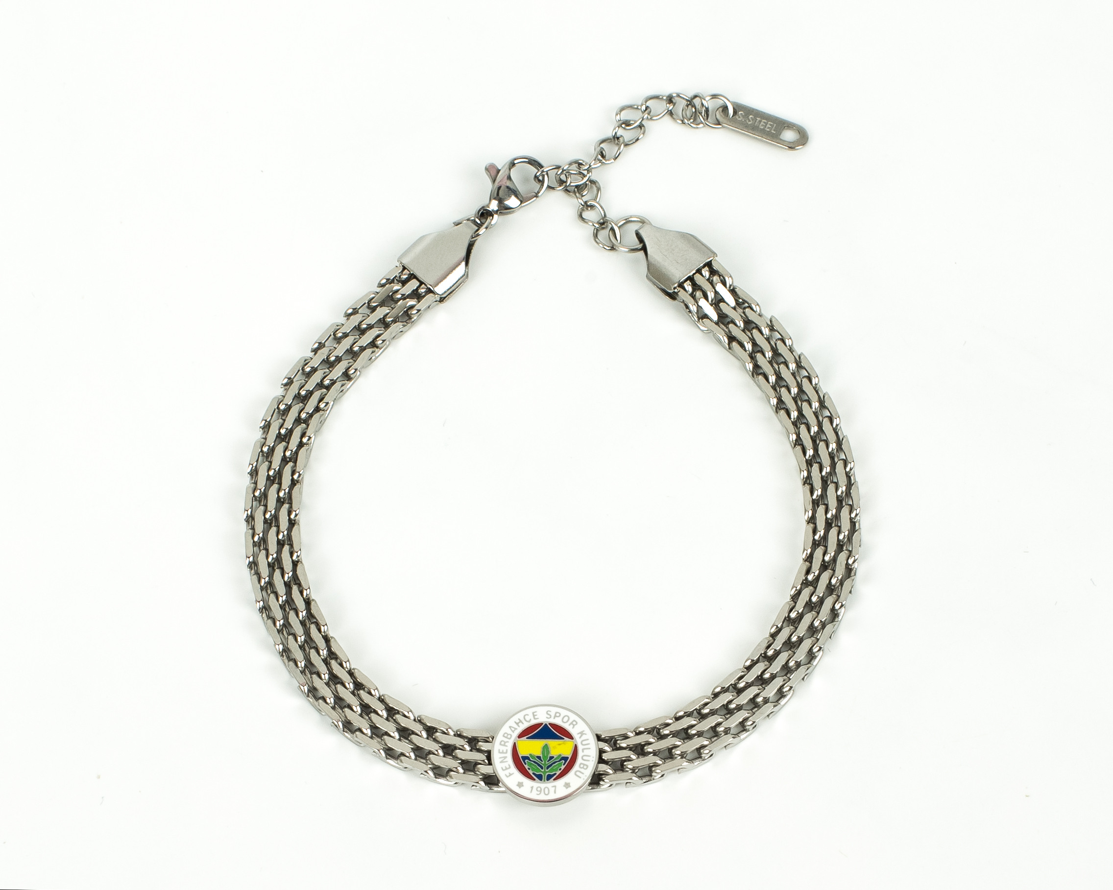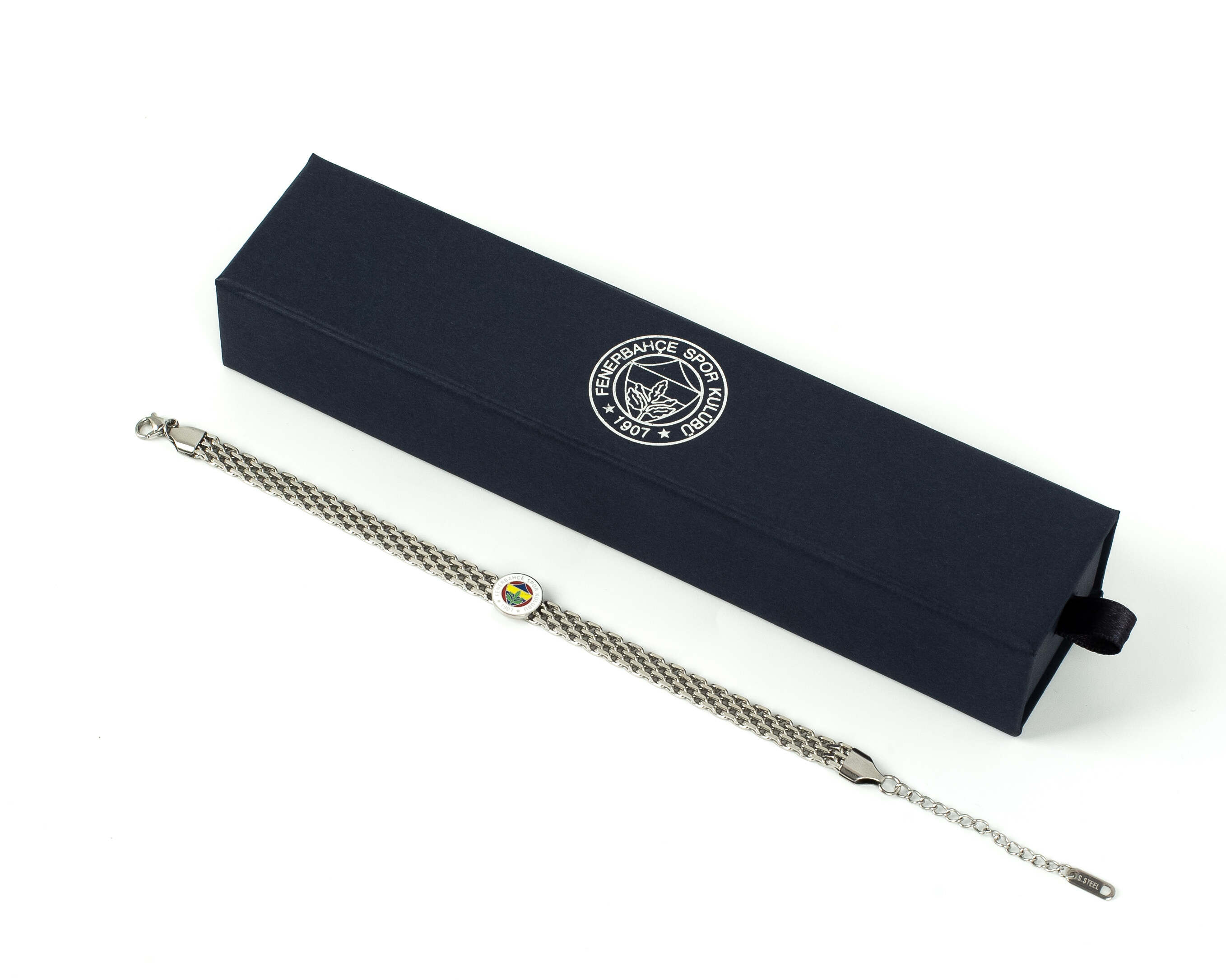 Orijinal Lisanslı Fenerbahçe Hasır Çelik Bileklik Paslanmaz çelik materyali sayesinde uzun ömürlü kullanım sunar ve günlük aşınma ve yıpranmalara karşı dayanıklıdır.