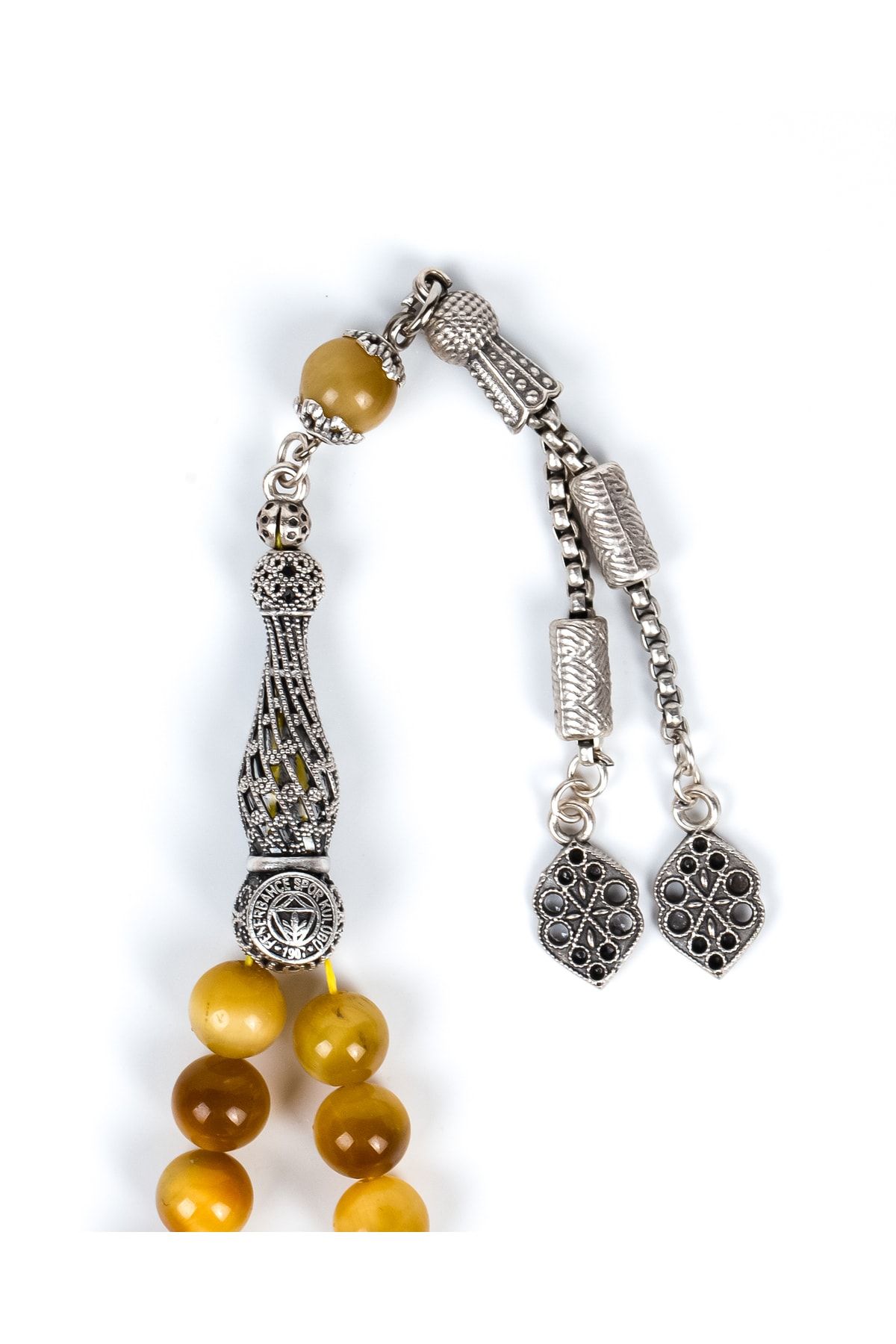 Orijinal Lisanslı Fenerbahçe Taraftar Doğaltaş Tespih Cesaretin, sezginin ve odaklanmanın simgesi olan kaplangözü doğal taşı, Fenerbahçe'nin enerjisiyle birleşti! Sarı tonlarında parlayan bu özel taşlarla hazırlanmış Fenerbahçe Sarı Kaplangözü Tespih, hem görsel zarafet hem de ruhsal denge sunar.; Her tanesi özenle seçilmiş olan bu tespih, yüksek kaliteli el işçiliği ile tamamlanmıştır.; Sarı-lacivert detaylarla süslenen tasarımı, taraftar kimliğinizi zarif bir şekilde yansıtır.; %100 doğal sarı kaplangözü taşlarından üretilmiştir.; Kaplangözü taşı, odaklanma, cesaret ve denge enerjisiyle bilinir.; Hem günlük kullanım hem de özel hediye alternatifi olarak idealdir.; Dayanıklı yapısı sayesinde uzun ömürlü kullanılabilmektedir.; Kaliteli işçilik ve zarif detaylarla tasarlanmıştır.